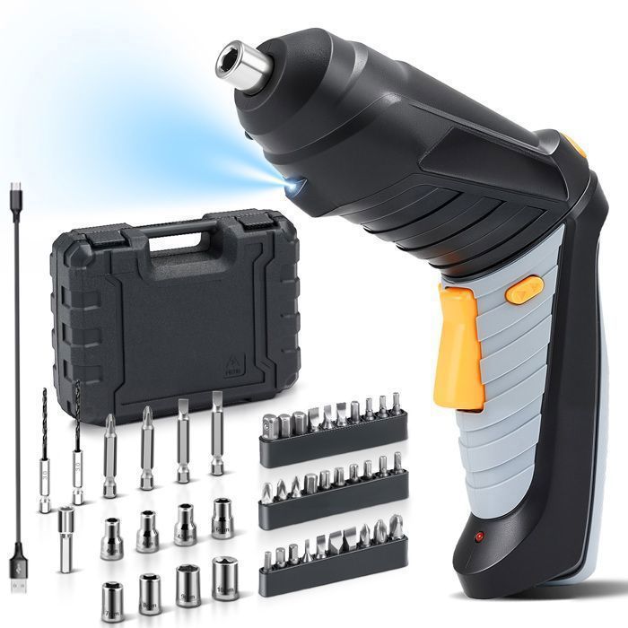 Ersandy - Perceuse Visseuse Sans Fil 3.6Nm, Visseuse Devisseuse 1800mAh 3.6V + 47 Accessoires, 2 Sens Rotation + Lampe led, Câble Charge usb, Idéal