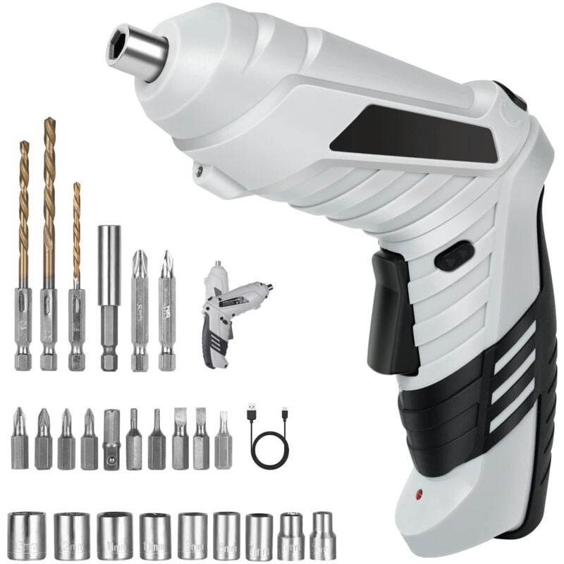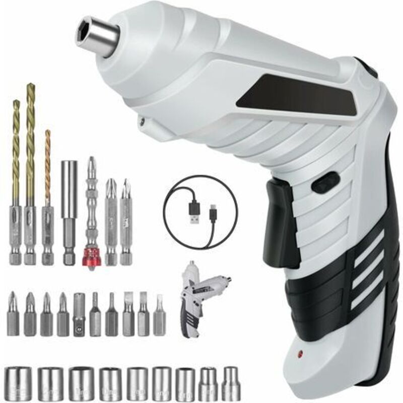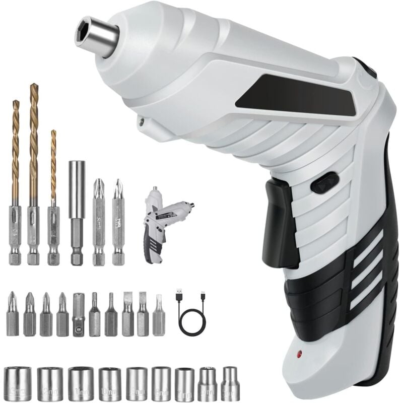 Ulisem - Perceuse Visseuse Sans Fil 3.6Nm, Visseuse Devisseuse 1300mAh 3.6V + 26 Accessoires, 2 Sens Rotation + Lampe led, Câble Charge usb, Idéal
