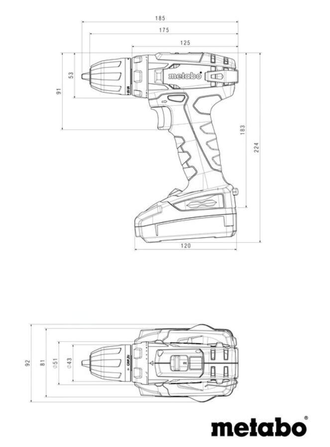 Perceuse-visseuse sans fil 18V BS18 - METABO - avec 2 batteries 18V 20 Ah - chargeur et coffret daccessoires - 602207710