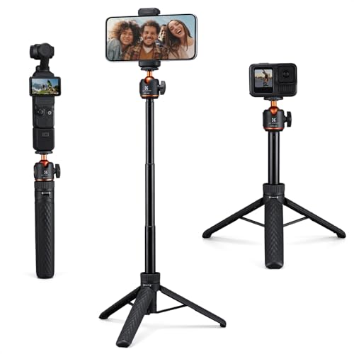 K&F CONCEPT MS-62 Perche à Selfie 65 cm, Trépied Léger Portable pour Téléphone/Caméra avec 1/4" et Rotule 360°, Compatible Smartphone, Caméra d'action pour Vlog, Selfie, Live