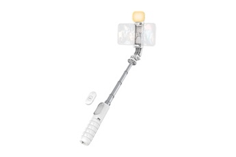 INFLUENCE PRO - Mini perche a selfie Bluetooth 2 en 1 avec eclairage LED - blanc