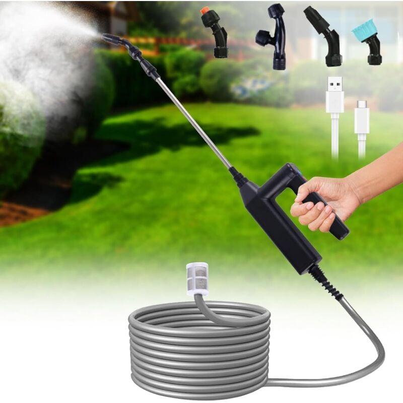 Fabater Pulvérisateur de Jardin à Batterie, 5 litres, Rechargeable par USB, avec 3 Buses à Vitesse réglable et Perche télescopique, pour Le Nettoyage des Plantes de Jardin