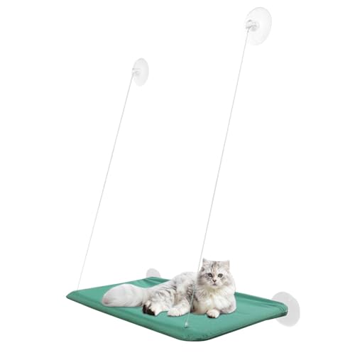 WAFOHSR Lits Suspendus for Animaux De Compagnie Chat Perchoir Fenêtre Hamacs for Chats D'intérieur Siège De Repos Sécurité Ventouses Robustes Respirant Maille Lavable Hamac pour Chat(Green)