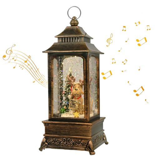 Lanterne de Noel avec la Musique, Lanterne Boule à Neige de Noël, Vintage Lanterne à Paillettes du Père Noël, Lumineux, USB/Alimenté Batterie, Lanterne Noel pour Décorations et Cadeaux de Noël-01