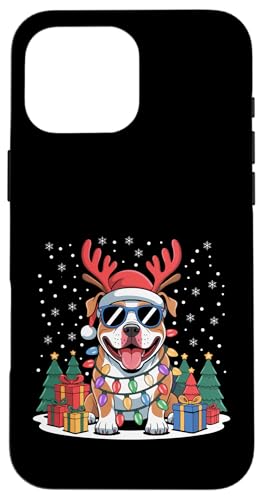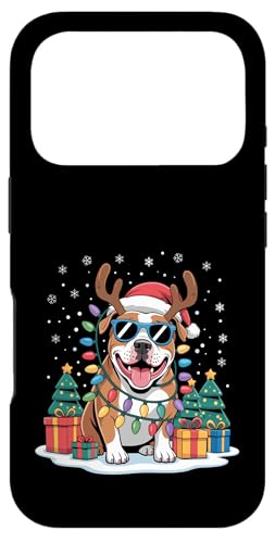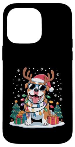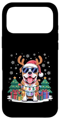 Drôle Père Noël Pitbull Renne Lumineux pour Les Amoureux des Chiens Coque pour iPhone 17 Pro Max