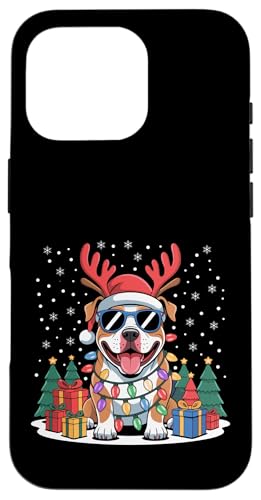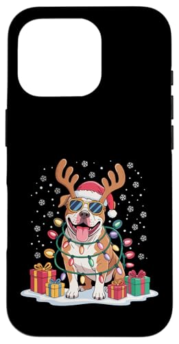 Drôle Père Noël Pitbull Renne Lumineux pour Les Amoureux des Chiens Coque pour iPhone 16 Pro