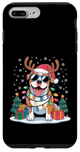 Drôle Père Noël Pitbull Renne Lumineux pour Les Amoureux des Chiens Coque pour iPhone 7 Plus/8 Plus