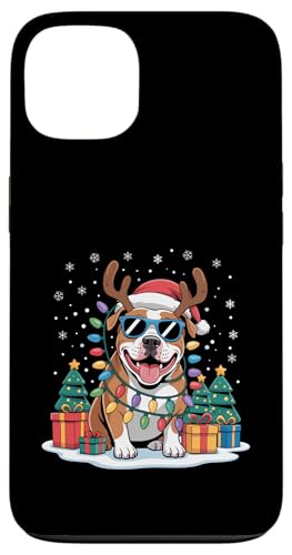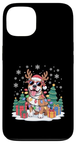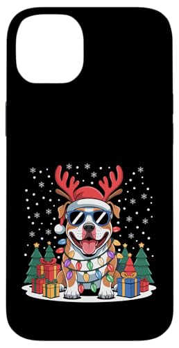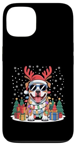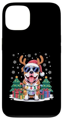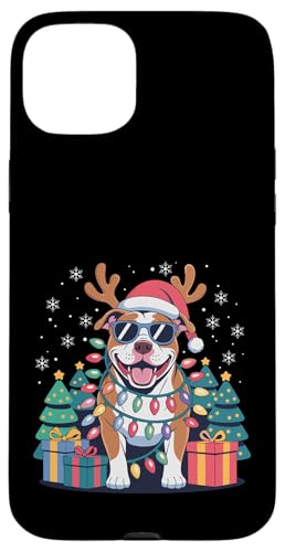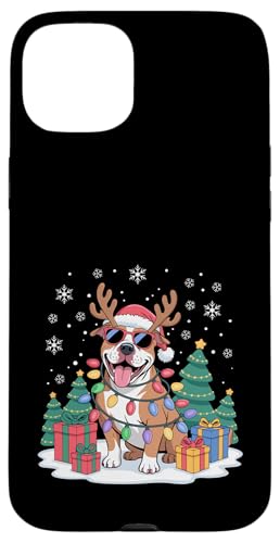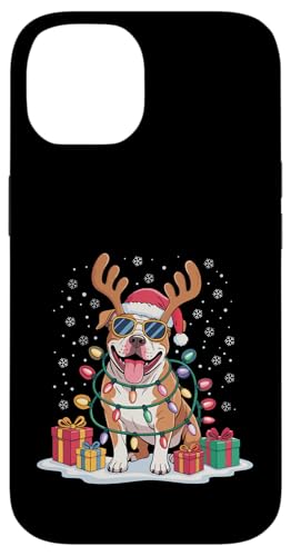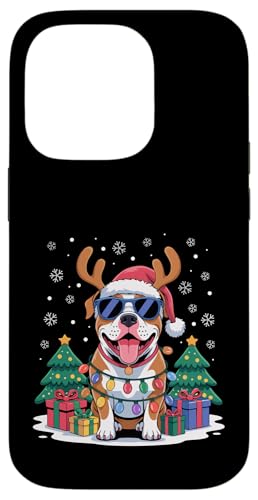 Drôle Père Noël Pitbull Renne Lumineux pour Les Amoureux des Chiens Coque pour iPhone 14