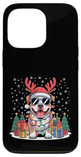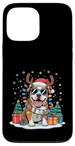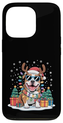Drôle Père Noël Pitbull Renne Lumineux pour Les Amoureux des Chiens Coque pour iPhone 13