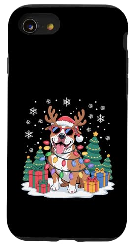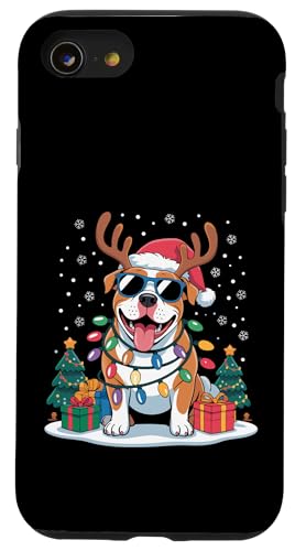 Drôle Père Noël Pitbull Renne Lumineux pour Les Amoureux des Chiens Coque pour iPhone SE (2020) / 7/8