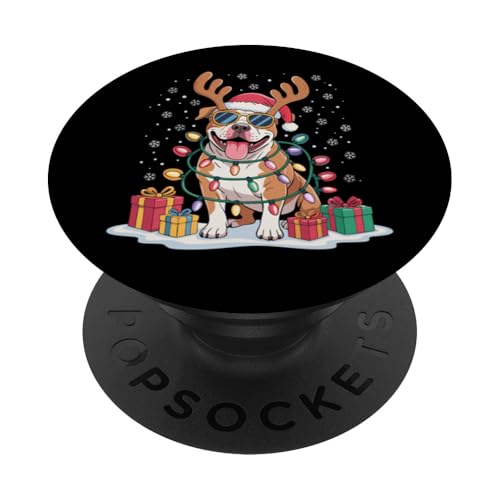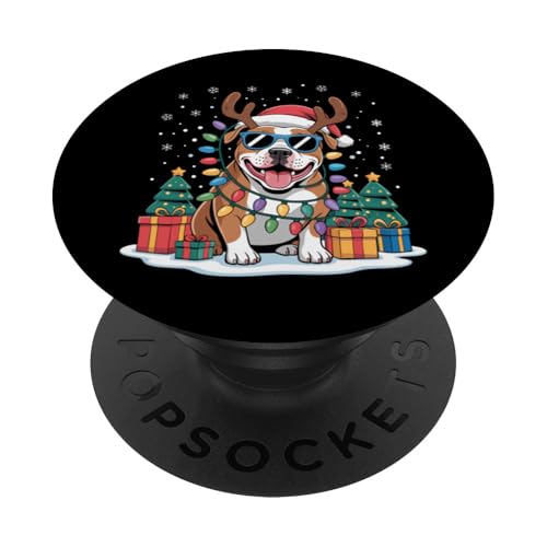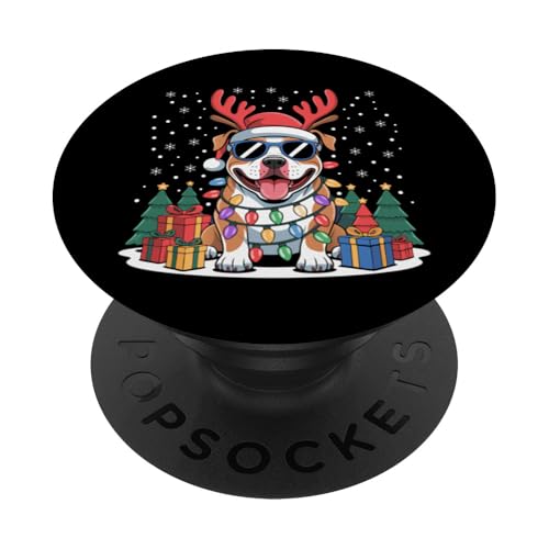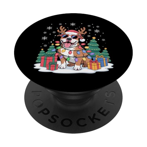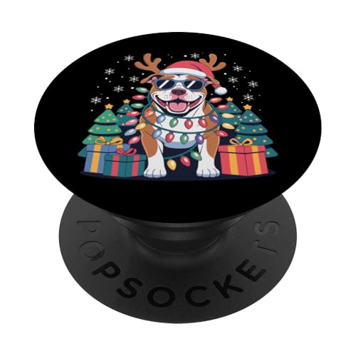 Drôle Père Noël Pitbull Renne Lumineux pour Les Amoureux des Chiens PopSockets PopGrip Adhésif