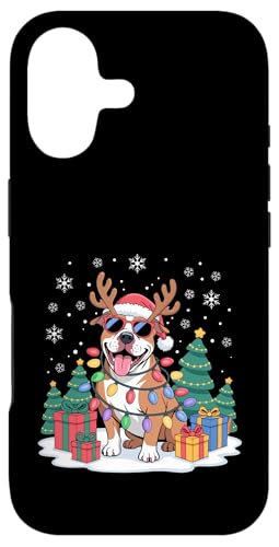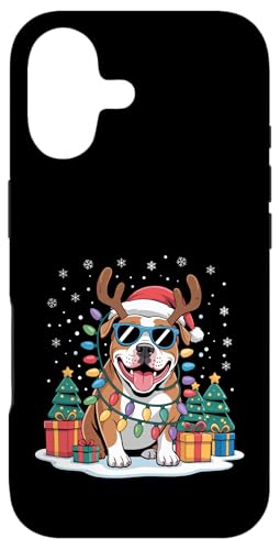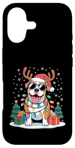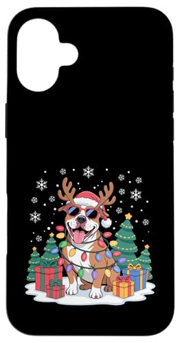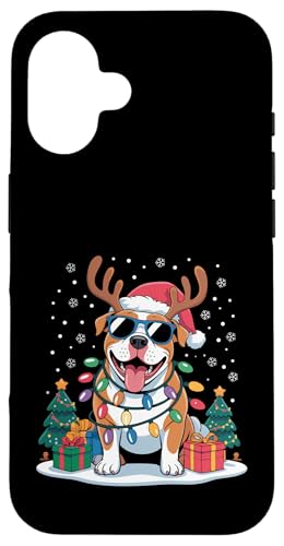 Drôle Père Noël Pitbull Renne Lumineux pour Les Amoureux des Chiens Coque pour iPhone 16