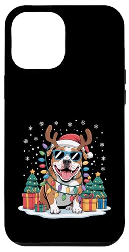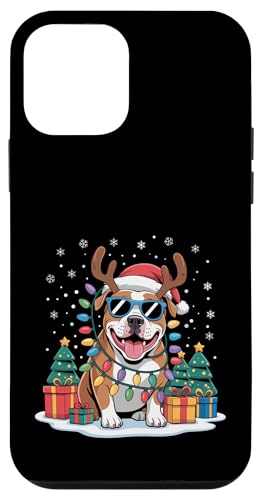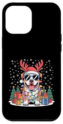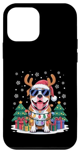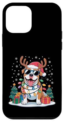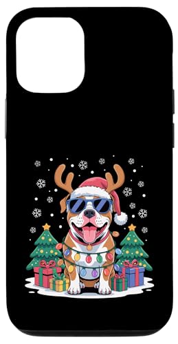 Drôle Père Noël Pitbull Renne Lumineux pour Les Amoureux des Chiens Coque pour iPhone 12/12 Pro