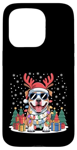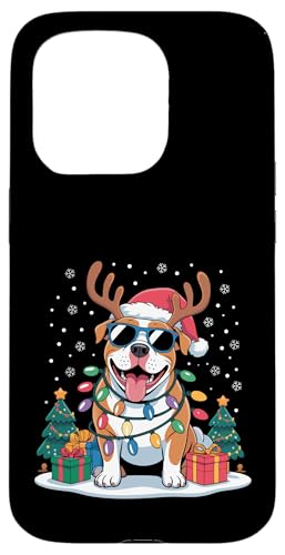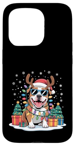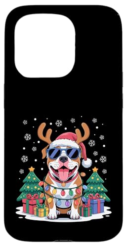 Drôle Père Noël Pitbull Renne Lumineux pour Les Amoureux des Chiens Coque pour iPhone 15 Pro