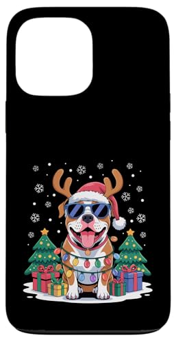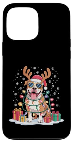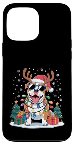 Drôle Père Noël Pitbull Renne Lumineux pour Les Amoureux des Chiens Coque pour iPhone 13 Pro Max