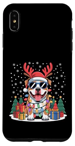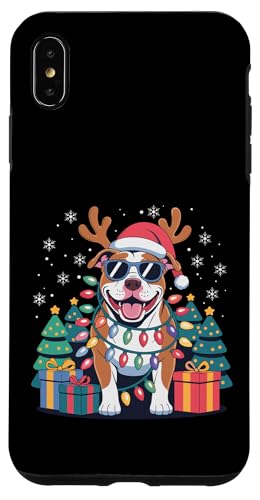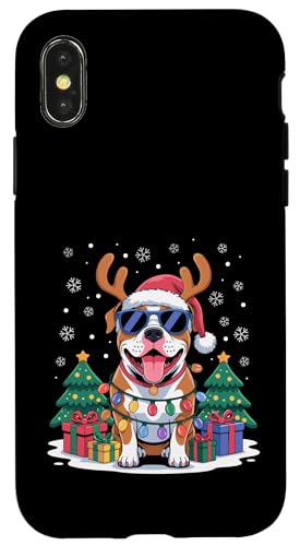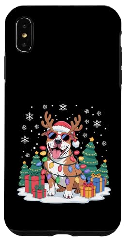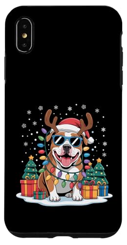Drôle Père Noël Pitbull Renne Lumineux pour Les Amoureux des Chiens Coque pour iPhone XS Max