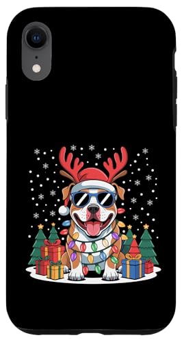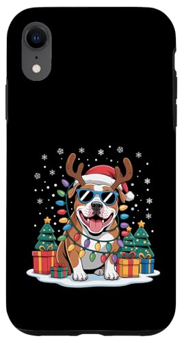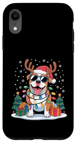 Drôle Père Noël Pitbull Renne Lumineux pour Les Amoureux des Chiens Coque pour iPhone XR