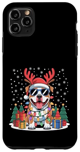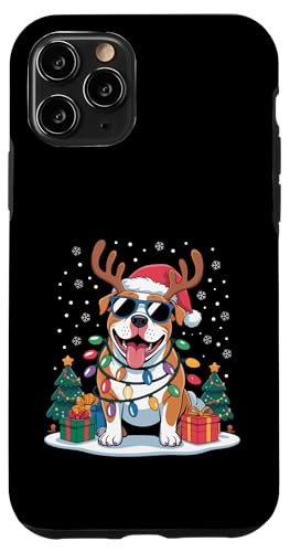 Drôle Père Noël Pitbull Renne Lumineux pour Les Amoureux des Chiens Coque pour iPhone 11 Pro