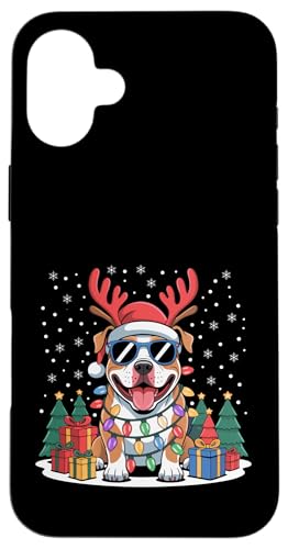 Drôle Père Noël Pitbull Renne Lumineux pour Les Amoureux des Chiens Coque pour iPhone 16 Plus