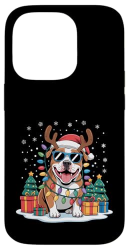 Drôle Père Noël Pitbull Renne Lumineux pour Les Amoureux des Chiens Coque pour iPhone 14 Pro