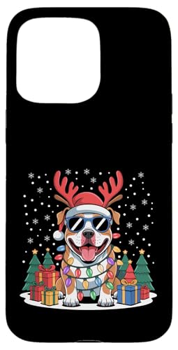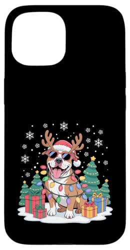 Drôle Père Noël Pitbull Renne Lumineux pour Les Amoureux des Chiens Coque pour iPhone 15