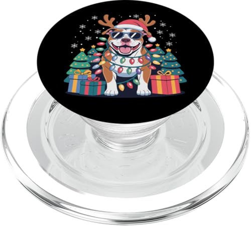 Drôle Père Noël Pitbull Renne Lumineux pour Les Amoureux des Chiens PopSockets PopGrip pour MagSafe