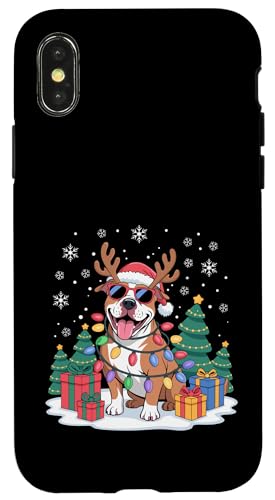 Drôle Père Noël Pitbull Renne Lumineux pour Les Amoureux des Chiens Coque pour iPhone X/XS