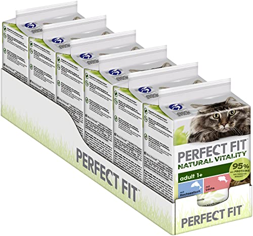 PERFECT FIT NATURAL VITALITY Croquettes pour Chat Adulte Stérilisé Poissons Blancs & Saumon - Lot de 6 Sacs 1kg - Nourriture Complète & Equilibrée avec des Ingrédients Naturels