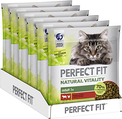 Perfect Fit Natural Vitality Croquettes pour chats adultes – Lot de 6 Sacs 1kg - convient aux chats stérilisés – Nourriture complète avec des ingrédients naturels