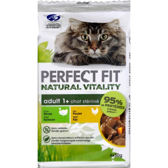 Perfect Fit Natural Vitality Sachets fraîcheur pour chats adultes stérilisés – Nourriture complète sans céréales - 12 unités 6X50g : 72 sachets