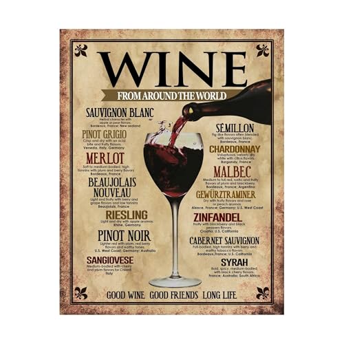 World Wine Guide Poster - Stylish Vintage Decor for Kitchen, Bar Cart, or Entertaining Space, Perfect for Hosts and Foodies(Unframed,12x18inch(30x45cm))