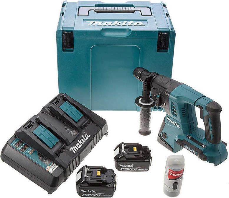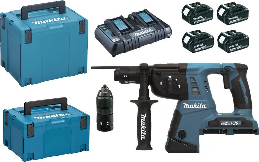 Perforateur-Burineur SDS+ 36V (2x18V) - 2.5J - MAKITA - avec 4 batteries 5Ah + 1 chargeur rapide + 2 MakPak + accessoires -