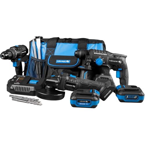HÖGERT TECHNIK 18V Coffret d'outils à batterie BL CONSTRUCTION – Perceuse-visseuse brushless 80 Nm, Perforateur, Meuleuse angulaire 125 mm, 2x Batterie 4 Ah, Chargeur 4 A