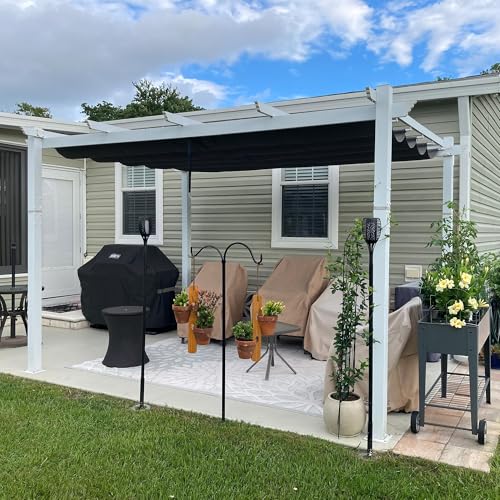 PURPLE LEAF Pergola Aluminium 4 x 3,2 m Tissu Teint en Fil, Pergolas pour Terrasse Extérieur, Pergola Jardin Extérieur Toit Coulissante, Pavillon de Jardin, Gris