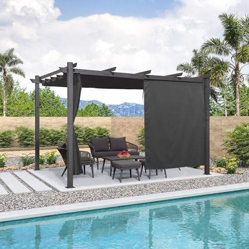 PURPLE LEAF Pergola Aluminium 4 x 3 m avec Rideau, Pergola Jardin Extérieur Toit Coulissante, Tonnelle de Jardin Tissu Teint en Fil, Gris