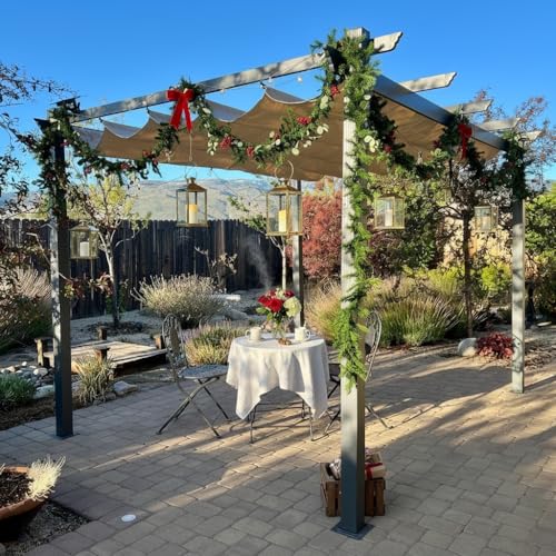 PURPLE LEAF Pergola Aluminium 4 x 3,2 m Tissu Teint en Fil, Pergolas pour Terrasse Extérieur, Pergola Jardin Extérieur Toit Coulissante, Pavillon de Jardin, Kaki