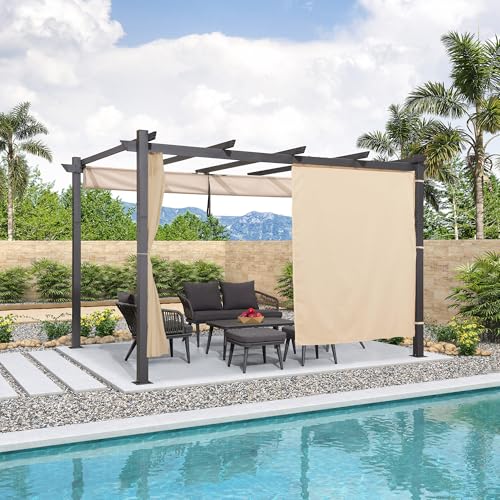 Angel Living Pergola en Aluminium, Coulissante Rétractable, Tissu en Polyester Haute Densité Hydrofuge et Résistant aux UV, Abri Soleil Pavillon de Jardin pour Jardin Terrasse (Beige, 4x3M)