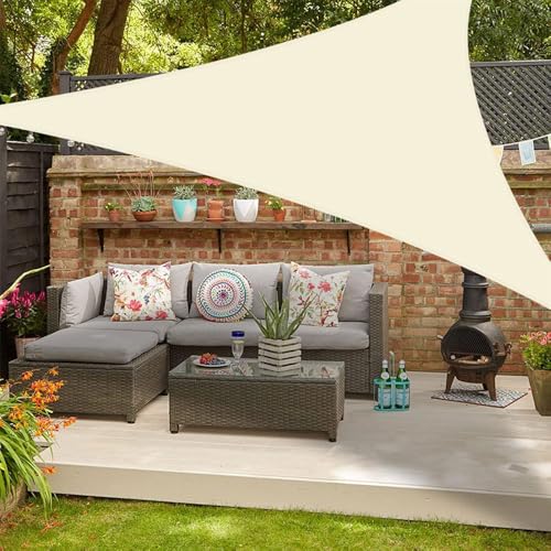Highdi Voile d'ombrage Triangulaire Imperméable, Tissu Oxford 420D Toile Ombrage Exterieur Protection UV Voile d'Ombrage Auvent de Terrasse pour Extérieur Jardin Pergola (Beige,3.6x3.6x3.6m)