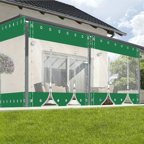 Panneau Latéral de Bâche Transparent avec Zip, 0.5mm PVC avec Œillets, Rideau Impermeable pour Terrasse, Garage, Pergola, Porche - Hauteur x Longueur