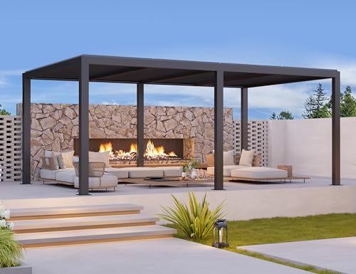 Pergola bioclimatique réglable de 4,6 x 3,3 m – En aluminium avec lattes réglables – 15,18 m² – Auvent de jardin pour patio et terrasse – Gazebo gris