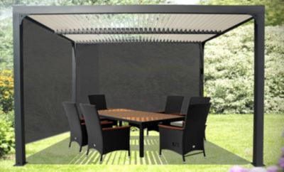 Pergola bioclimatique autoportante Habrita aluminium 3,6 x 3 m gris anthracite + 2 rideaux manuels 3,6 m
