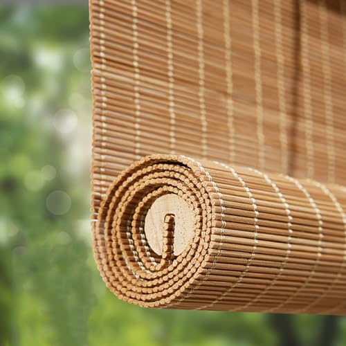 Jolan Store À Rouleau en Bambou Intérieur-Store Enrouleur Extérieurs-Stores Romains-Pare-Soleil-Stores en Bambou-Rideaux Décoratifs Rétro,utilisé pour Terrasses/pergola,Carbonized-120x120cm/47x47in