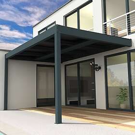 Salto Pergola bioclimatique adossée motorisée Alumin'home aluminium gris foncé RAL 7016 3 x 3 m avec LED intégrés