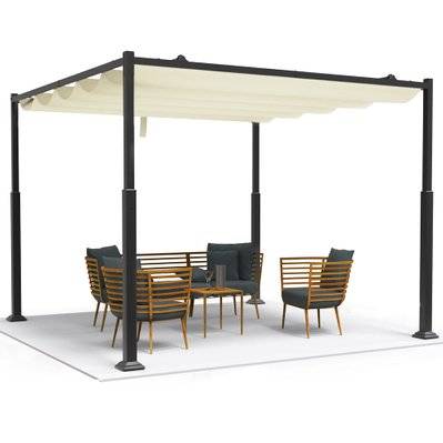 Vounot VOUNOT Pergola retractable 3x3m en metal et toile Polyester haute densite 180g/m2 beige