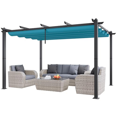 VEVOR Pergola rétractable extérieure 3 x 4 m, tonnelle de Jardin en Aluminium avec auvent Pare-Soleil en Toile Polyester Haute densité Anti-UV, pour patios, Jardins, terrasses, arrière-Cours, Bleu