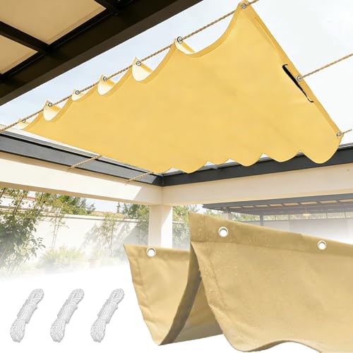 Voile d'ombrage Retractable à Vagues avec œillets et Corde, Toile pergola rectangulaire imperméable Anti-UV et indéchirable pour terrasse-Beige||60x850cm(24x335in)