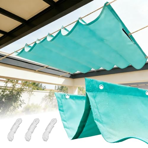 Voile d'ombrage Retractable à Vagues avec œillets et Corde, Toile pergola rectangulaire imperméable Anti-UV et indéchirable pour terrasse-Sea Blue||80x700cm(31x276in)
