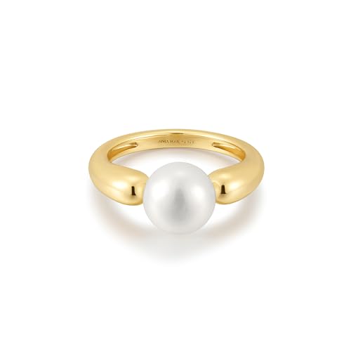 ANIA HAIE Bague Chic Creator Freshwater Sphere Pearl en Argent Sterling 925 plaqué Or 14 carats, ornée d'une Perle d'eau Douce, Taille EUR : 56, avec Emballage Cadeau