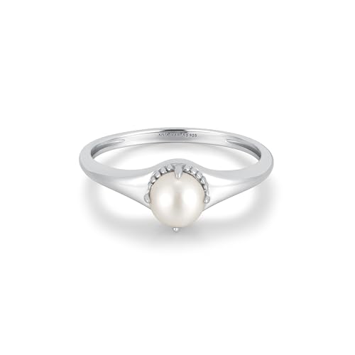 ANIA HAIE Bague pour Femme Chic Creator Perle d'eau Douce et Zircon cubique Blanc Bague en Argent Sterling 925 sertie d'une Perle d'eau Douce et 6 zircons, Taille EUR : 56
