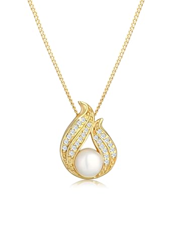 Elli DIAMONDS Collier Femmes Perle de Culture d'Eau Douce avec Diamant (0.13 ct.) en Or Jaune 585
